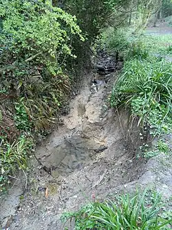 From a geological perspective, the area along the stream is on the sandstone of the Ashdown Beds and this is surrounded by clays and mudstones, also of the Ashdown series all laid down in the Cretaceous Period. Several valleys run from The Ridge to the sea from the Marline Wood area in the west to the Country Park in the east.