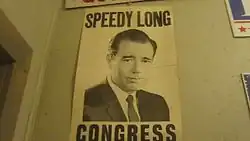 Both of the Longs were segregationists but Gillis Long was less outspoken in his views than Speedy Long was, and Gillis had also, according to Speedy, aided the passage of the Civil Rights Act of 1964 by voting to increase the size of the House Rules Committee from 12 to 15 members, thus diluting the South's influence on the committee. Speedy used the slogan "Vote Against the Man Who Voted Against the South" in the campaign against Gillis. A state senator from New Orleans described the difference between the two Longs: Speedy was "a redneck" with a regional focus, while Gillis was "a cosmopolitan". In the primary, Speedy Long easily beat Gillis Long. Speedy's campaign in the general election was limited to a single 150-second television appearance. Although the Republican presidential candidate, Barry Goldwater, carried the district, Democrat Speedy Long won election handily, becoming the sixth member of the Long family to serve in the United States Congress.[2]