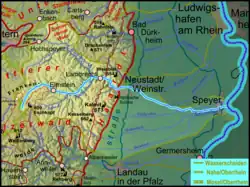![]() Course of the Speyerbach to the Rhine through the Palatinate Forest and Rhine valley | |