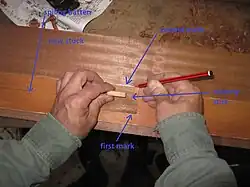 When spiling a complex shape curved in more than one direction, it is important to keep the dummy stick in the same orientation, and not allow it to follow the curve, otherwise a distortion of the shape will result. The shapes of boats' planks are complex as the plank gets wider to cover the broader midships and then narrower as the planks converge towards the bow and the stern. [4] A curved line on a flat surface will be a straight line on a curved surface. This process enables more complex shapes to be built in wood than in sheet metalworking for example, would require stretching by hammer/mallet and sandbag or the use of an English Wheel.