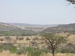 Spioenkop Dam impounds the Tugela River in KwaZulu-Natal. It is located within a nature reserve by the same name. The dam was commissioned in 1972, has a capacity of 272,265 cubic metres (9,614,900 cu ft), and a surface area of 15.314 square kilometres (5.913 sq mi), the dam wall is 53 metres (174 ft) high. Spion Kop (hill) is located 2.5 km to the north of the dam.