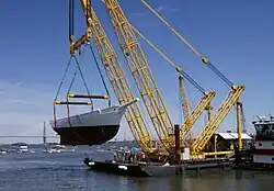 The keel was laid June 16, 2001. The Whiskey Plank (last plank to be installed) was fitted on July 15, 2006.