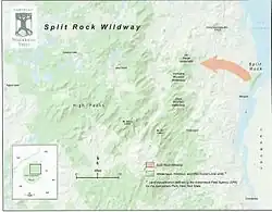 The Split Rock Wildway is a proposed wildlife corridor between the Split Rock Wild Forest and the Jay Mountain Wilderness Area in the eastern Adirondack Park in Essex County, New York. The area is located within the Champlain Valley along Lake Champlain.[1][2] The Wildway captures a diversity of natural communities in the northern hardwood forest ecosystem, including low-lying clayplain forests, wetlands, the Boquet River floodplain forest, montane spruce-fir forests, and sub-alpine flora. The Champlain Valley is a major flyway for hawks, songbirds, and waterfowl; of the 193 birds that breed in the Adirondacks, 155 are found in the valley. The Wildway provides habitat for a variety of wildlife, including mink, otter, white-tailed deer, fisher, and bobcats. The northernmost population of eastern timber rattlesnakes, an endangered species in New York, inhabits rocky outcrops in the Split Rock Wild Forest. The majority of land in the Wildway is privately owned and at risk to land subdivision and habitat fragmentation.