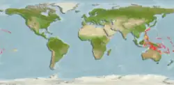 Splitfin flashlightfish are found in the western and central Pacific Ocean from the Philippines and Indonesia east to the Tuamotus, north to Japan, and south to the Great Barrier Reef. It is generally found near drop-offs and caves 200–400 m (660–1,310 ft) in depth,[2] but will move into shallower waters during the winter months.[9]