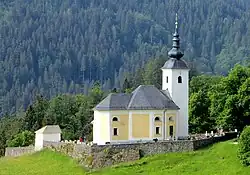 The local church is dedicated to Saint Nicholas. It also contains some of Grohar's early paintings, and there is a statue of Grohar nearby.[3]