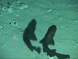 The spongehead catshark (Apristurus spongiceps) is a rare species of shark belonging to the family Pentanchidae, the deepwater catsharks.[2] This species was only known from two specimens taken in the Pacific Ocean: an adult from near Bird Island, Hawaii, and a juvenile from the Banda Sea off Sulawesi. They are found on or near the bottoms of insular continental slopes, at depths of 570 to 1,480 m (1,870 to 4,860 ft).[3] In 2002, the spongehead catshark was seen alive in its natural habitat for the first time, from the submersible Pisces IV at a depth of about a kilometer, on the Northampton Seamount off the northwestern Hawaiian Islands.[4]