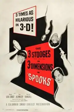 Spooks! is a 1953 short subject directed by Jules White starring American slapstick comedy team The Three Stooges (Moe Howard, Larry Fine and Shemp Howard). It is the 148th entry in the series released by Columbia Pictures starring the comedians, who released 190 shorts for the studio between 1934 and 1959.