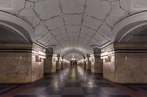 Sportivnaya (Russian: Спорти́внаяⓘ) is a Moscow Metro station on the Sokolnicheskaya line. It is in the Khamovniki District in the Central Administrative Okrug of Moscow. Named for the nearby Luzhniki Olympic Complex, it opened in 1957. Passengers may make out-of-station transfers from Sportivnaya to Luzhniki on the Moscow Central Circle, which is about 200 meters away.[1]
