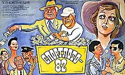 Sportloto-82 (Russian: Спортлото-82) is a 1982 Soviet action adventure comedy film directed by Leonid Gaidai. The film stars Algis Arlauskas, Svetlana Amanova, Mikhail Pugovkin, Mikhail Kokshenov and Nina Grebeshkova. It was filmed in Soviet Union. It was also one of the all-time leaders at the Soviet box office with over 55,000,000 theatre admissions in the Soviet era.