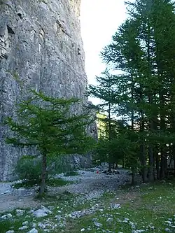 The first edition of Sportroccia was organized in 1985 on the initiative of Andrea Mellano, a strong climber of the '60s and a member of the Italian Academic Alpine Club, and the journalist and writer Emmanuel Cassara. The jury was composed of Riccardo Cassin, Oscar Soravito, Maurizio Zanolla and Heinz Mariacher.[3] The competition was contested on the Parete dei Militi (Wall of the Soldiers) in Valle Stretta, near Bardonecchia. The fact that the races were held on the rock and not on artificial walls put the organizers in the vanguard of several issues that eventually led to moving climbing competitions to artificial walls only.