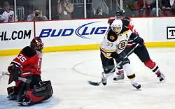 Since their initial meeting on December 8, 1924, the longest-standing rivalry in the NHL is the one between the Bruins and their Canadian archrival, the Montreal Canadiens.[37] These two teams have met 34 times in the NHL's Stanley Cup playoffs, with Montreal taking 18-straight playoff series from the Bruins between 1946 and 1987.