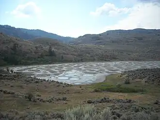 Spotted Lake — known as Lake Khiluk[1] (Nsyilxcən: Kłlil’xᵂ) in the Nsyilxcən language — is a saline endorheic alkali lake located northwest of Osoyoos in the eastern Similkameen Valley of British Columbia, Canada, accessed via Highway 3.[2]