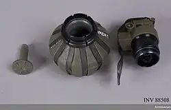 Shgr 07B, introduced in 2019, has a new ignition system, also developed by Ian Kinley at FMV. Concerned with a number of serious incidents and accidents involving hand grenades, he identified the two main issues as the time-fuze's burntime varying with temperature (slower in cold and faster in heat) and the springs, the striker spring in particular, coming pre-tensioned from the factory by designs relatively unchanged since the 1930's. In 2019, a new mechanism, fully interchangeable with the old ones, was adopted into service. The main difference, apart from a fully environmentally stable delay, is that the springs now are twist-tensioned by the thrower after the transport safety (pin and ring) has been removed, thus eliminating the possibility of unintentional arming of the hand grenade.[3]