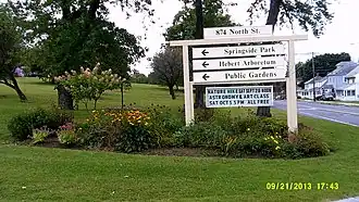 Springside Park is a recreational city park on the north side of Pittsfield, Massachusetts. At 237.5 acres (96.1 ha) it is the city's largest park. Much of the park is wooded, providing for passive recreational opportunities such as hiking. The southwestern section of the park, nearest to North Street, is developed, with ballfields, a bath house, pond, and Springside House, an Italianate mansion whose early construction dates to c. 1856. Some of the parklands are also used for the Hebert Arboretum. Through the 1960s the City of Pittsfield operated a ski rope tow and provided ski lessons at the park. The park was listed on the National Register of Historic Places in 2008.[1][2]