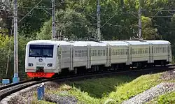 Moscow express electric train (also known "Sputnik") it is a regional electric multiple unit train service, that connects Moscow and the regions inside its oblast.[1] Compared with conventional commuter trains, they move with a higher speed and fewer stops, which causes twice higher price. Work under the 7000 th numbering. On some routes the price is the same as a regular train (for example, to Novoperedelkino platform).