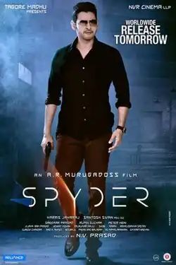 Spyder is a 2017 Indian action thriller film[5][6] written and directed by A. R. Murugadoss and produced by N. V. Prasad. The film was simultaneously shot in Telugu and Tamil languages, and stars Mahesh Babu, S. J. Suryah and Rakul Preet Singh in the lead roles. Murugadoss wrote the Tamil dialogue while the Paruchuri Brothers wrote the Telugu version. The film was edited by A. Sreekar Prasad, with cinematography by Santosh Sivan and music by Harris Jayaraj.