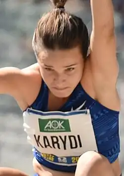 Spyridoula Karydi (Greek: Σπυριδούλα Καρύδη; born 30 January 2001) is a Greek triple jumper.[1] She represented Greece at the 2022 European Athletics Championships in Munich, taking the 9th place in the final.