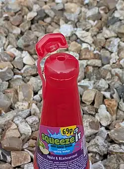 Squeezit was a fruit-flavored juice made by General Mills and marketed from 1985 until the middle of 2001.[1] Squeezit also appeared in stores from mid-2006 to mid-2007 and in 2011 and 2012. The drink came in a plastic bottle[2] that the drinker had to squeeze in order to extract the beverage from its container, hence the name.