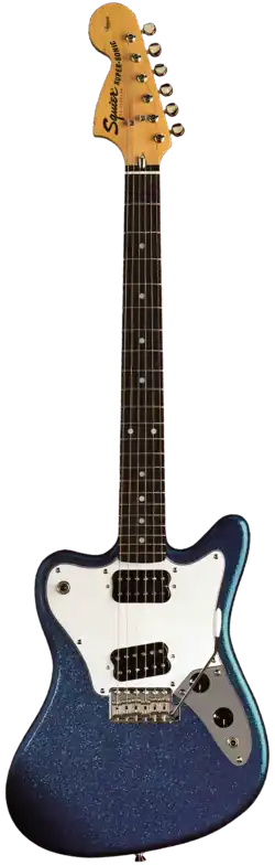 The Squier Super-Sonic is an electric guitar manufactured by the Fender Musical Instruments Corporation, originally marketed under their Squier brand. The design, conceived by former Squier marketing manager Joe Carducci, is said to have been inspired by a photograph in which Jimi Hendrix is pictured playing a Fender Jazzmaster upside down.[1]