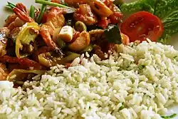 Typical Sri Lankan dish of rice and prawns.