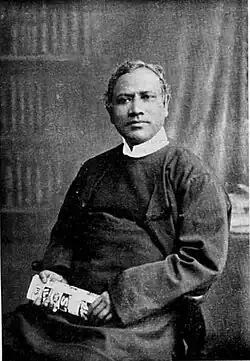 Basu was the oldest son of Syama Charan Basu, a Bengali babu working under the British who had been involved in the establishment of the Punjab University, Lahore. At the age of six Basu's father died leaving his mother to bring him up along with three other siblings including Baman Das Basu. He was educated at the Lahore Mission School where his father had served as headmaster. He received a scholarship to study at the Lahore Government College and passed the First Arts Examination with Arabic as his second language. He then continued studies for a BA degree, while also taking an interest in religious literature, and shorthand. In order to gain some knowledge of science he attended lectures at the Lahore Medical College. He passed his BA in 1881 and gave a lecture on evolution at the Arya Samaj which was the first introduction to the subject in Hindi and was a sensation in Lahore at the time, with an essay in the Arya of Lahore (founded by Ratan Chand Bary in 1882) carrying his paper on Theory of Evolution from an Aryan point of view (1882) which was noticed by Madame Blavatsky in her note in The Theosophist (March, 1882). He took an interest in the Theosophical movement[2] and established a Theosophical Society in Lahore.[3] During this time he also met and collaborated with a yogi from Madras named Sri Sabhapati Swami.[4] On 3 April 1883 at the Siksha Sabha Hall, Rai Bishan Lal, a Theosophist from Bombay was to demonstrate occult phenomena. Also present was John Campbell Oman and Lal's performance was described as irresponsible, leading to the society being disenfranchised by Colonel Olcott who called the members "Shylocks".[5] While in college, Sris Chandra took part in a Student's Rebellion, organizing a strike in protest against the principal Dr Gottlieb Wilhelm Leitner for kicking a student.[6] He joined the Brahmo Samaj in 1881 and was involved in establishing an Indian National Society.[7] In 1883 Basu went to Calcutta where he was married in the last week of May to the daughter of Babu Ambika Charan Ghosh at a time when protests against the Ilbert Bill and the arrest of Surendra Nath Banerji had rocked the city.[8] He also took the examination in 1883 for a vakilship and obtained the fifth position, the first place being taken by Moti Lal Nehru.[9] He served in the Meerut High Court from July 1883. Following the Panjdeh incident in 1885, Meerut was carefully monitored by the Duke of Connaught posted as Commandant, fearing a repetition of the 1857 uprising.[10] Sris then moved to Bareilly, working as a Munsif for a few months before transferring to the Allahabad High Court in November 1886. Here he had a habit of taking shorthand notes that was noticed by the Acting Chief Justice Straight who then appointed him as judgement-writer of the Court to replace Arthur Strachey.[11] It was in Allahabad that he took an interest in the Mitakshara School of Hindu Law and began to study Panini's grammar in order to accurately understand the original sources in Sanskrit.[12] On 30 April 1888 Basu was sent to report on the speech by A.O. Hume who was speaking at Allahabad.[13] The idea of the Indian National Society that Basu established was suggested by the Theosophical Society and Basu had written a poem "India's heroes rise" and had sent Hume a collection of "Indian National Songs and Lyrics" which has been suggested as having influenced Hume.[14] Basu founded the Panini Office in November 1891 so as to publish his and other works. Ramananda Chatterjee, principal of the Kayastha Pathshala served as an editor.[15] In 1896 he was transferred to Benares. He was a correspondent of Annie Besant and supported her cause for birth-control and translated some of her works.[16] Basu was titled Rai Bahadur in 1900 and nominated as a Fellow of the Allahabad University. The Bharat Dharma Mahamandal titled him as Vidyarnava in 1895.[17] He was transferred to Ghazipur in 1905 as a sub-judge and then to Benares in 1907 as a judge for small causes. In 1908 he was again moved to Allahabad and in 1910 to Benares.[18] He applied for ten months of leave from May 1915, prior to his retirement on 20 March 1916 and moved to Allahabad.[19] Basu suffered from diabetes and high blood pressure and suffered from a spate of illnesses, and the loss of several friends and close family members just before his own death. He was cremated on 24 June and his ashes scattered into the Ganges.[20]