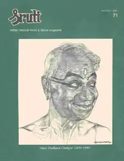 Sruti was founded in 1983 by N. Pattabhiraman, who had returned to India from a career abroad, bringing with him a focus and skill for English composition. The magazine initially had financial difficulties, with Pattabhiraman desiring to gain subscribers vice take out loans, and minimal support from corporations. The journal foundered somewhat following Pattabhiraman's death, but as of 2014 continues forward under staffers who rose to take over its leadership.[1] The magazine was acquired by the Sanmar Group in 2006.[2]