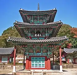 Until recently, there were only two wooden pagodas remaining, preserved in Korea as cultural heritage objects - the Palsangjeon (hall) at the Beopjusa and the Daeungjeon (hall) here at the Ssangbongsa.[4]