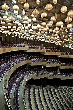 Performances are held in three venues, Großes Haus (Large hall), the variable Kleines Haus (Small hall) and the new U2. Every season offers around 30 new productions and 600 performances, from classical to premieres of new works. The symphony orchestra plays around 80 concerts per season.[2]