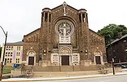 St. Agnes Church is a historic former Roman Catholic church in the West Oakland neighborhood of Pittsburgh, Pennsylvania. The church was built in 1916–17 and was designed by noted Pittsburgh-based ecclesiastical architect John T. Comès. St. Agnes parish was established in 1868 and a temporary church opened in 1873 at 2400 Fifth Avenue in Uptown.[2] This was replaced with a permanent church in 1889, but the building burned down along with several neighboring structures on January 21, 1914.[3] Following the fire, the present church was built about 0.3 miles (0.48 km) to the east of the old location. The new building was dedicated by Bishop Regis Canevin on January 28, 1917.[1]