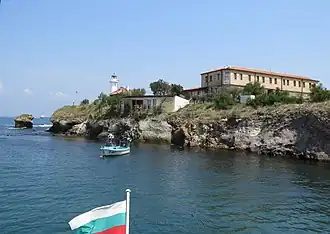 St. Anastasia Island (Bulgarian: остров св. Анастасия, ostrov Sv. Anastasiya, formerly called Bolshevik Island, остров Болшевик) is a small Bulgarian island in the Black Sea. It is located in the Gulf of Burgas, 1.5 km off the coast near Chernomorets, at 12 metres above sea level, and covers a territory of one hectare. The island is built of volcanic rocks.[1][2] It is the only inhabited island off the Bulgarian Black Sea Coast.