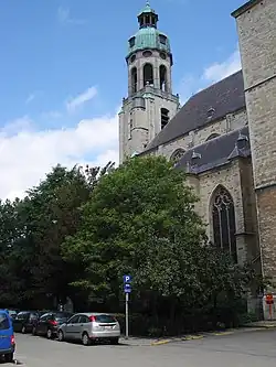 Many of the church's furnishings are distinctly in the Baroque style, as earlier pieces had been destroyed during the 16th century Beeldenstorm. The church furniture is made by some of the leading sculptors of their time. The High Altar was originally from the former St. Bernard Abbey. The predella is the work of Pieter Verbrugghen I (1665) and the high altar itself the work of Willem Ignatius Kerricx (1729).[5] The choir stalls was originally made for the convent of the Augustinian friars by Pieter Verbrugghen I. The sacrament altar and confessional in the Our Lady's Chapel are by Lodewijk Willemsens (1630-1703). The Holy Cross Altar is by Cornelis van Mildert (1664), the St. Anna Shrine is by Jan van den Cruyce (1674), while the Our Lady Altar was made by Peeter Vervoort, Willem Kerricx and his son Willem Ignatius Kerricx (1729). The pulpit is by Jan Baptist Van Hool and Jan Frans van Geel (1821). The organ case is the work of Engelbert Baets (1779).[4]