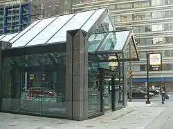 The station is near the Entertainment District, including Roy Thomson Hall, Royal Alexandra Theatre, Princess of Wales Theatre and TIFF Lightbox, the home of the Toronto International Film Festival. Also nearby is the Financial District and the Toronto Stock Exchange, with access east of the station via the PATH pedestrian tunnel system to Sun Life Centre, Exchange Tower, First Canadian Place, Standard Life Centre, and Toronto-Dominion Centre.[2] Destinations west of the station, also available via PATH, include Metro Hall, Canadian Broadcasting Centre, RBC Centre, Ritz-Carlton Toronto and Simcoe Place,[2] and continuing further to the Metro Toronto Convention Centre on the south side of Front Street.