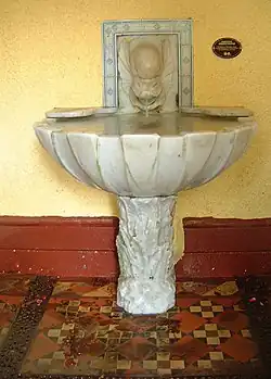 In 1892, Lady Foley donated a Sicilian marble spout and basin. The spout is in the form of a dolphin's head positioned above a shell-shaped basin. A plaque above the spout reads: