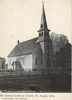 St. Ansgar is named for the patron saint of Scandinavia, a French Benedictine monk who Christianized much of Denmark, Sweden, and northern Germany between 830 and 865 A.D. The town is the site of First Lutheran Church of St. Ansgar, a pioneer Norwegian Lutheran Church founded in December 1853 by Claus Lauritz Clausen, who was commissioned by the Lutheran Church of Norway to form congregations for Norwegian immigrants in Wisconsin, Iowa, and Minnesota.