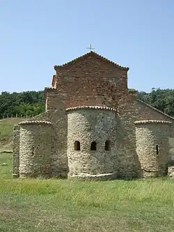 ![]() East side of the building with apsis | |