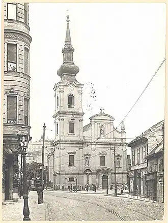 The church burned down completely in the Great Tabán Fire of 1810 which destroyed the whole district. "The tower of the Catholic church in Rácváros caught fire after midnight yesterday, and collapsed horribly in the morning; the church itself also burned, illuminating this terrible night", a contemporary report claimed.[9]