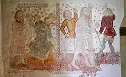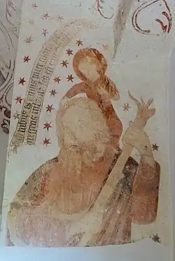 In several places in the interior of the church, there are large remnants of colored murals on the plaster. These paintings date back to the turn of the 14th and 15th centuries.[27] All the murals were restored during a renovation project in 1965-1967.[57]