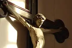 The crucifix at the eastern end of the south aisle, which was later reworked, is also late Gothic and is said to have served as a triumphal cross.[3] It is 2.92 meters high[40] and was placed on the lower floor of the west transept in the 19th century.[40]