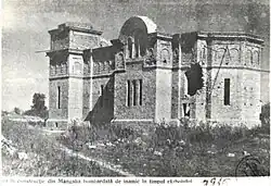 The church was begun in September 1915, with contributions from local citizens.[1] The structure was nearly complete the following August, but was severely damaged by naval bombardment carried out by the Central Powers after Romania entered World War I. The head builder was killed, falling beneath the walls.[2]