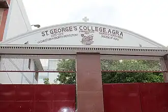 St. George's College, Agra, is one of the oldest convent schools in India. It is a Minority Anglo-Indian Christian Institution granted Minority Rights under Article 30 of the Indian Constitution. It is located near Mall Road and near to Targhar. The campus is approximately 40 acres (160,000 m2).The students are widely named as Georgians in the city. The school is accredited under the Indian Certificate of Secondary Education board for grade 10th and under the Indian School Certificate board for Grade 12. The school was established in 1875 as an Army School for British Armed Forces at Agra. With the passing by of time it started admitting students from civilian background as well. The college originated in a school set up by Father Joseph Rooney, an Irish priest from Navan, in the late 1840s. Rooney later founded St Peter's College, a Catholic boys school in Agra.[1]