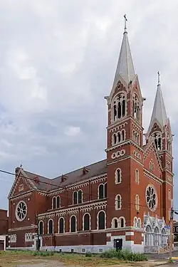 St. George Church, also known as St. John Vianney Church, is a former Roman Catholic parish church in the Allentown neighborhood of Pittsburgh, Pennsylvania. The church was designed by Herman J. Lang in the German Romanesque and Rundbogenstil architectural styles, was built in 1910–1912, and today functions as a community space. The church was nominated in January 2016 to become a City Historic Landmark by Preservation Pittsburgh, but the nomination was placed on hold pending an appeal of the closure of the church.[1]