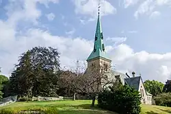 The cemetery is home to the Chapel of St. James-the-Less, which sits atop a knoll at the highest point of the cemetery. In its harmonious composition, this small funeral chapel is a splendid example of Victorian Gothic design. Its sense of strength and spirituality is derived from the subtle contrast of its stone walls, enveloping roofs, and soaring spire. Erected in 1860 and opened in 1861, the chapel was designed by Cumberland and Storm, one of Toronto's leading 19th-century architectural firms. The Chapel of St. James-the-Less was designated a National Historic Site of Canada in 1990.[4][5]