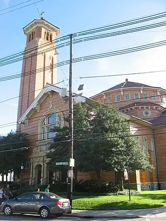 The parish of St. James was established in 1906 as the subdivisions in the surrounding area were rapidly being built up (three churches within a few blocks of St. James also trace their foundation to 1906). An initial wood-frame church was built in 1906 on the site of the present building, as was a wood-frame school building which was replaced with the modern brick school building in 1924.[2] The parish house was completed in 1929.[3]