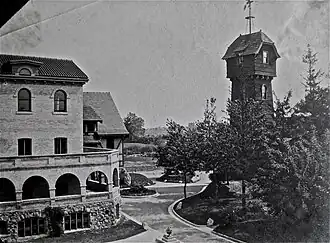 On 10 May 1876, Theodore Bruener, Rector of the Catholic Normal School and Pio Nono College, a music-oriented teaching institution in St. Francis, established the Catholic Deaf and Dumb Asylum. It served 17 pupils in its first school year, with classes being held in the second floor of the Pio Nono gymnasium.[1][2] Seeing remarkable growth, Bruener set out fundraising in order to construct a separate building for the school.[1] Construction of the new structure was completed in the summer of 1879 and dedicated in December of that year. The finished building was a three-story, cream brick Italianate structure, surrounded by acres of forest, farmland and ornamental gardens.[2] It could accommodate 60 students.[2]