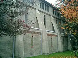 The former parish hall—now the diocesan headquarters—was built from 1955 to 1956 to the east of the church. The parish hall is connected to the church by a cloister, both to a design by G. L. Thornton Sharp.[2]