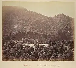 St. John in the Wilderness is an Anglican church in India and one of Nainital's oldest buildings. The site was chosen and approved in 1844 by Bishop Daniel Wilson. The cornerstone was laid in October 1846 and Captain Young, an executive engineer, made the plans at the cost of Rs 15,000 raised from private subscriptions and pew rents. Built in a Gothic style, it was inaugurated on 2 April 1848. A memorial in the church commemorates those killed in the 1880 landslip.[1]
