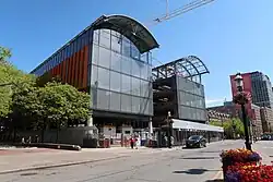 The City of Toronto government is now proceeding with another market building on the site of the North building at 92 Front St. A new four-storey building with an atrium is to replace the 1968 North building. The city council has awarded the contract to The Buttcon Limited/The Atlas corporation Joint Venture. The construction on the new project started in July 2019. Spring 2022 was the timeline that had been announced for the new building to be ready. As of February 2025, the building is expected to be completed and operational in April 2025. During the rebuilding of the North Market, the farmer's market was relocated to 125 The Esplanade, just south of the South building. Foundations of the 1831, 1851 and 1904 North Market buildings were found below the floor of the 1968 building.[10] The new building will also include courts and an underground parking garage.