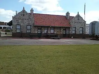 St. Louis-San Francisco Railroad Depot is a historic train station located at Poplar Bluff, Butler County, Missouri. The station was built in 1928[2] by the St. Louis–San Francisco Railway. It is a one-story, Mission Revival style brick building sheathed in textured stucco. It sits on a concrete foundation, has a gable and hipped Spanish tile roof, and features two interior brick and stucco chimneys. The building is presently occupied as a railroad museum.[3]: 5