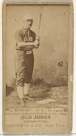 Baseball Hall of Fame member Jake Beckley played for the 1888 St. Louis Whites. Playing for the team at age 20, Beckley batted.319 in 38 games for St, Louis, before making his major league debut after the Whites folded. Following the demise of the team, Beckley was purchased for $4,500 (along with Harry Staley) by the Pittsburgh Alleghenys midway through the 1888 season.[7][8]