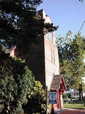 The St. Luke's Protestant Episcopal Church is a historic Episcopal church located in Seaford, Sussex County, Delaware. It was built in 1843, and reconstructed in 1904. It is a two-story, brick Gothic Revival style building. It has a one-story chancel and crenellated three-story tower. It features stained glass lancet windows. Concrete buttresses were installed in 1943.[2] St. Luke's was organized by the Rev. Corry Chambers in 1835, from the remnants of the former St. Mary's congregation. St. Mary's was founded in 1704, but disestablished after the American Revolution.[3] Delaware Governor William H. H. Ross (1814-1887) is buried in the churchyard.